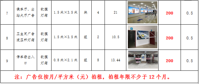 (六)拍租鎮(zhèn)雄縣開元商業(yè)物業(yè)服務(wù)有限公司以勒高鐵站站前廣場各類廣告位使用權(quán),廣告位分布、類型、規(guī)格及展示效果如下: