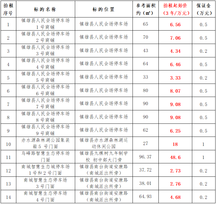 鎮(zhèn)雄縣國有資產(chǎn)使用權(quán)拍租公告